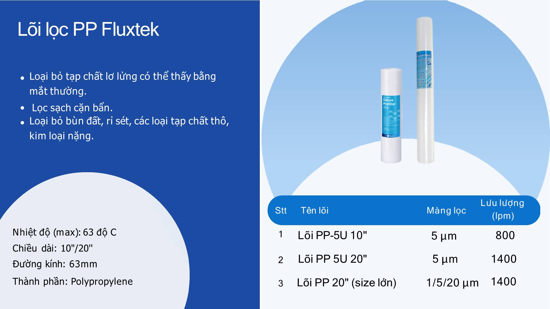 Loại bỏ tạp chất lơ lửng có thể thấy bằng mắt thường, lọc sạch cặn bẩn >5µ. Loại bỏ bùn đất, rỉ sét, các loại tạp chất thô, kim loại nặng.